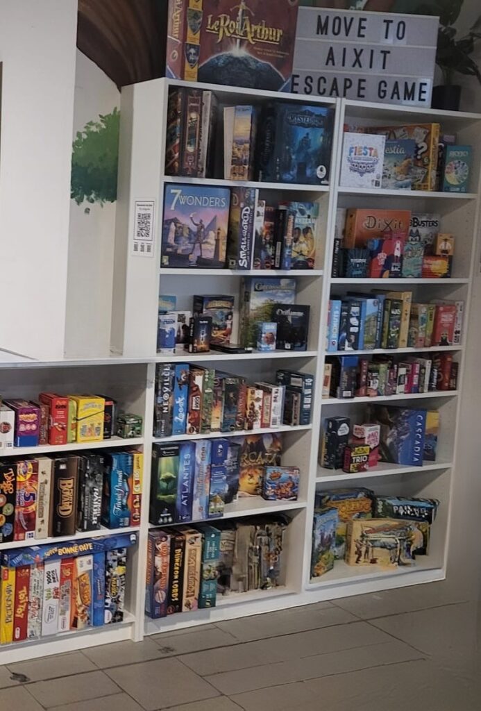 Ce qui m’a aussi séduit dans la formule Move to Aixit, c’est ce qui se passe une fois la salle terminée. Sur place, un bar à jeux convivial vous accueille pour débriefer et prolonger le plaisir autour d’un verre, d’une bricole à grignotter et de jeux d’ambiance.