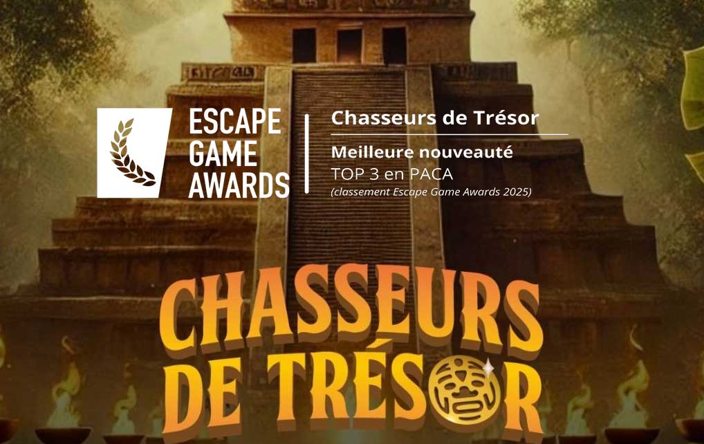 La salle Chasseurs de Trésor a été officiellement récompensée aux prestigieux Escape Game Awards 2025, élue dans le Top 3 des meilleures nouveautés en région PACA. Et on comprend pourquoi !